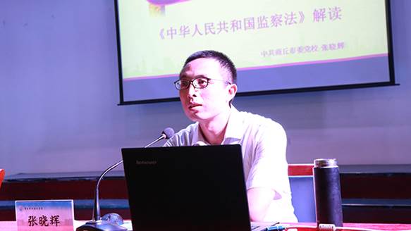 市委宣讲团成员、中共商丘市委党校教授张晓辉,围绕着“坚定不移全面从严治党,不断提高党的执政能力和领导水平的战略部署”这个主题全面解读了《中华人民共和国监察法》。他从制定监察法的背景和重大意义、监察法的主要内容和具体规定、纪检监察工作需要注意的若干问题等三个方面对《中华人民共和国监察法》进行了详细解读。张晓辉的报告内容翔实,层次清晰;语言生动,言简意赅;条文剖析,深入浅出;以案说法,发人深省。